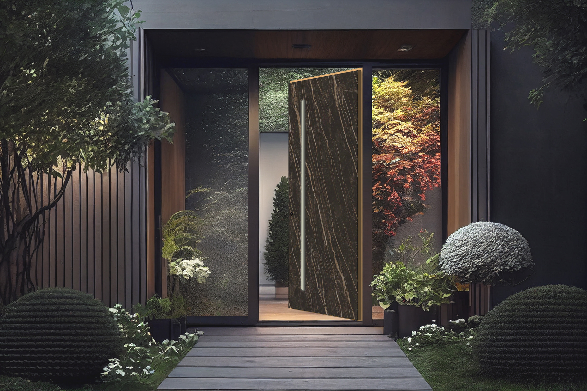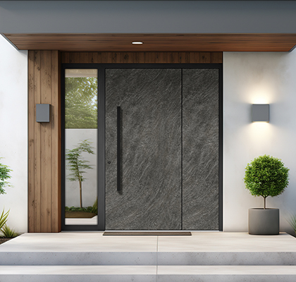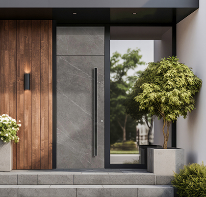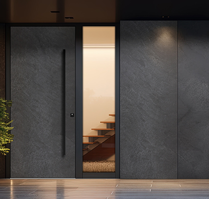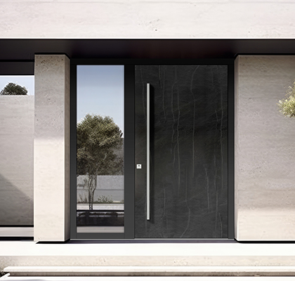 Wir schätzen die Arbeit der menschlichen Hände, die aus Leidenschaft und der Tradition mehrerer Generationen hergeleitet wird. Unser neuestes Holz/Stein Kollektion bietet eine einzigartige Kombination aus hochwertigen Materialien wie Holz, Altholz, Keramik, Stein, Laminat und schwarzem emailliertem Glas, die Ihre Eingangstüren in elegante Kunstwerke verwandeln.